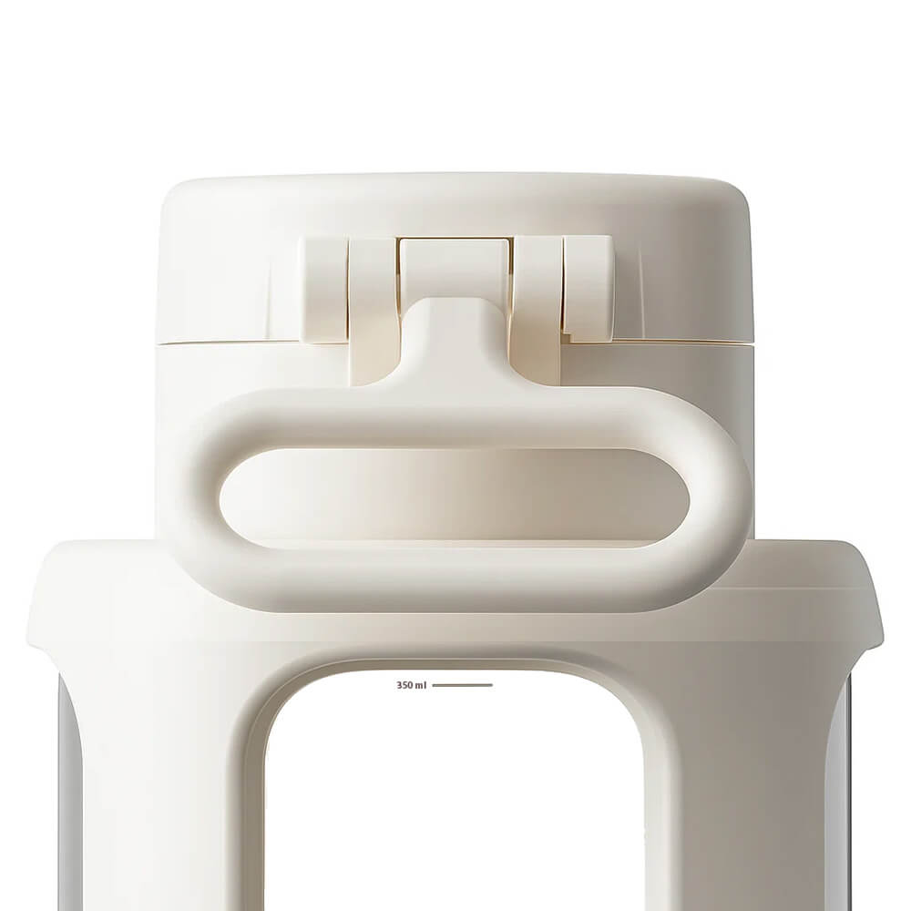1.Chwyć pokrywę urządzenia i delikatnie odkręć, aby uzyskać dostęp do zbiornika. Wlej do zbiornika odpowiednią ilość płynu – może to być woda do przygotowania mleka modyfikowanego lub mleko do bezpośredniego podania.